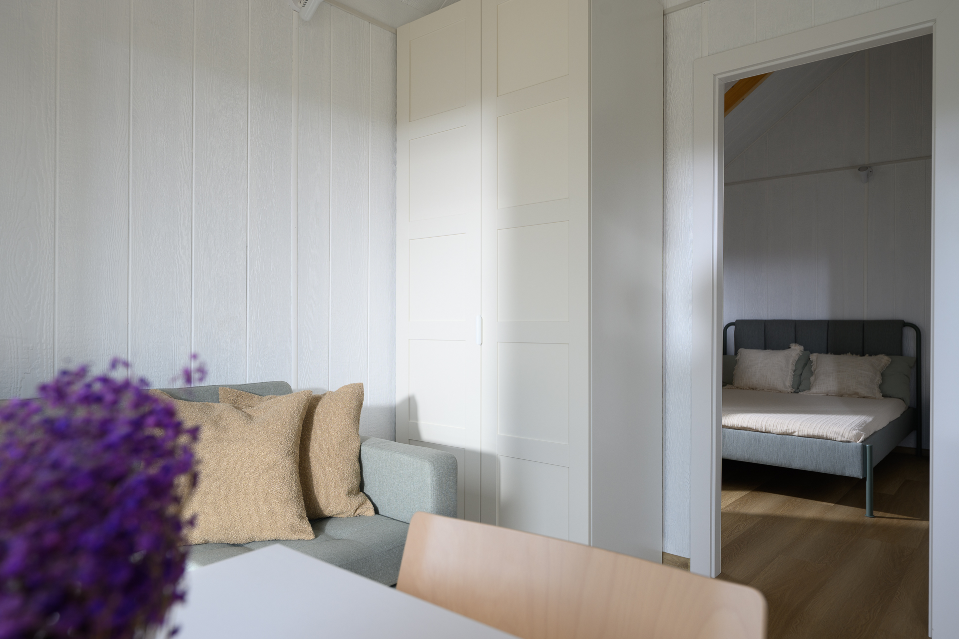 Interjeras, kuriame modernus dizainas dera su praktiškais sprendimais. Viskas suplanuota patogiam kasdieniam naudojimui.